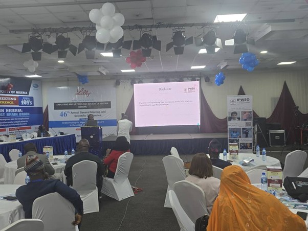 Dr Elizabeth Oyenusi, Associate Professor of Paediatric Endocrinology and member of our Famcare Board, is leading efforts to raise awareness of PWS across Nigeria and was pleased to have received support through the IPWSO Grants Fund. Dr Oyenusi is pictured here presenting at the Annual Scientific Conference of the Endocrine and Metabolism Society of Nigeria (EMSON) in Lagos in September 2025. Her co-presenter, Dr Oluwakemi Ashubu, shared the story of the first genetically confirmed PWS case from Ibadan, Nigeria.